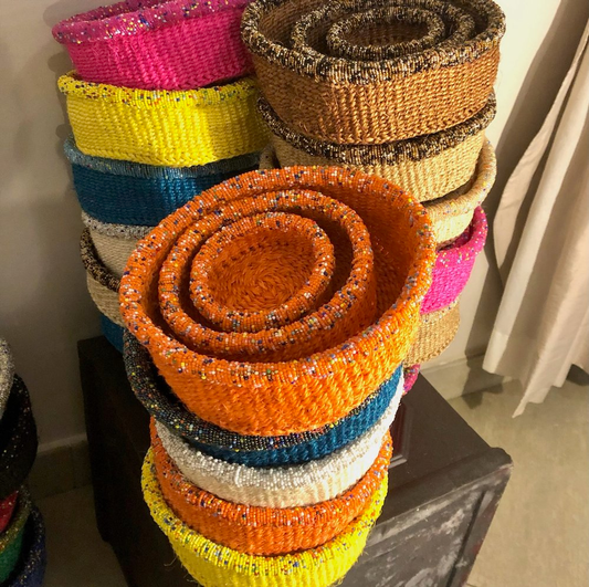 Stackable Bracelets - Gold with Blue Accents | Handmade in Kenya