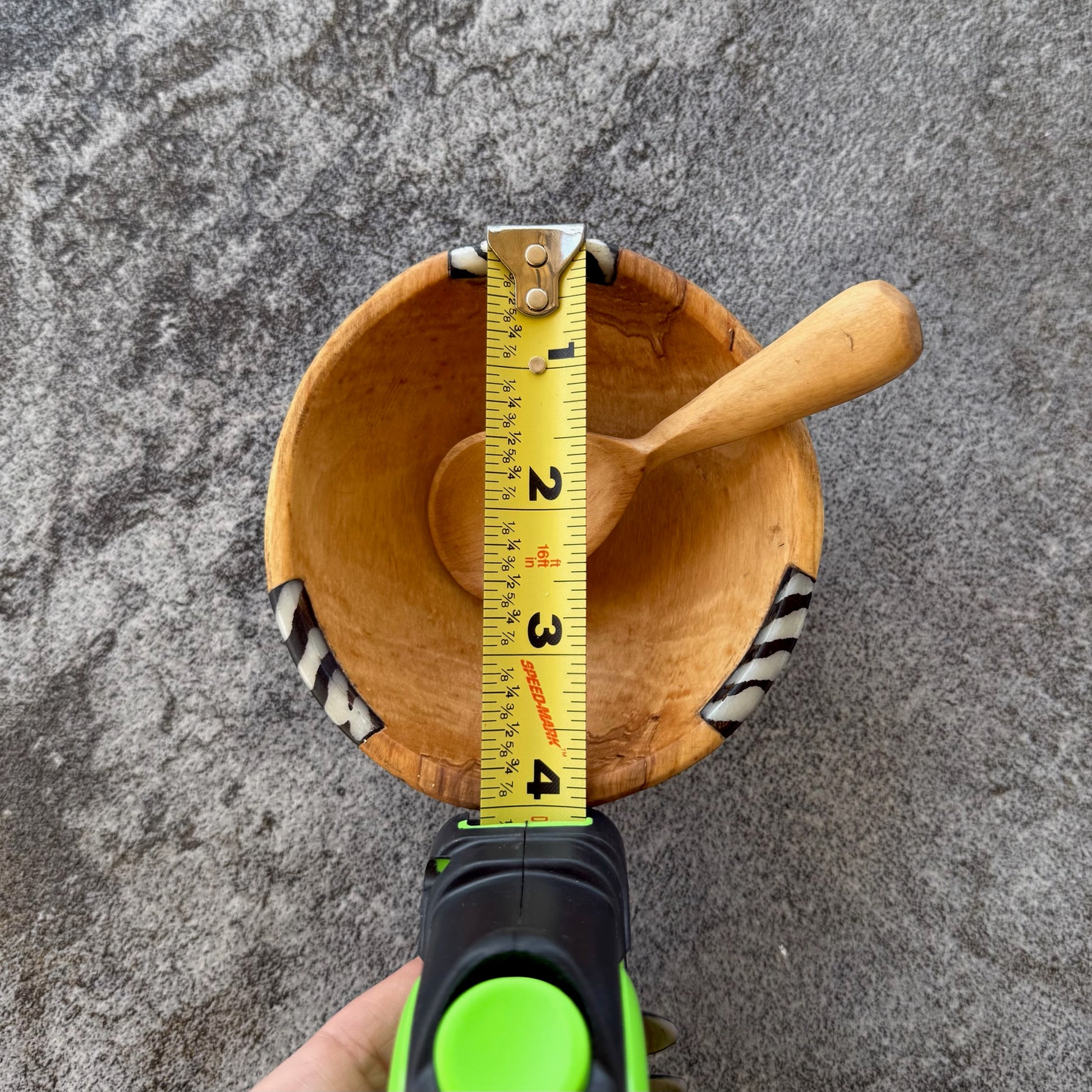Hand-carved in Kenya from richly grained rosewood, this small artisan bowl features three striking sections of bone inlay along the rim. Each piece is shaped, smoothed, and polished by hand, showcasing natural grain variations and subtle character marks that reflect the artisan’s craftsmanship.