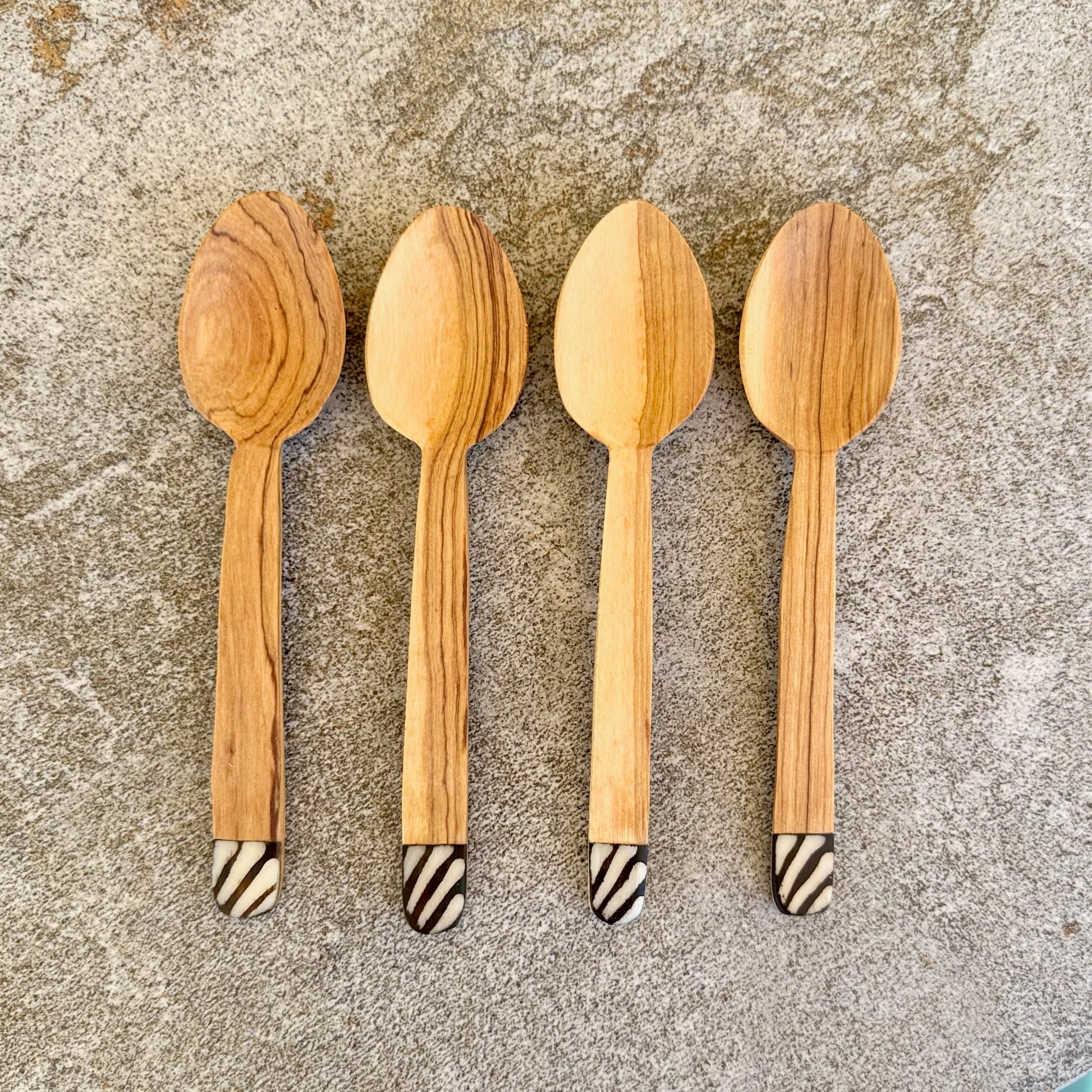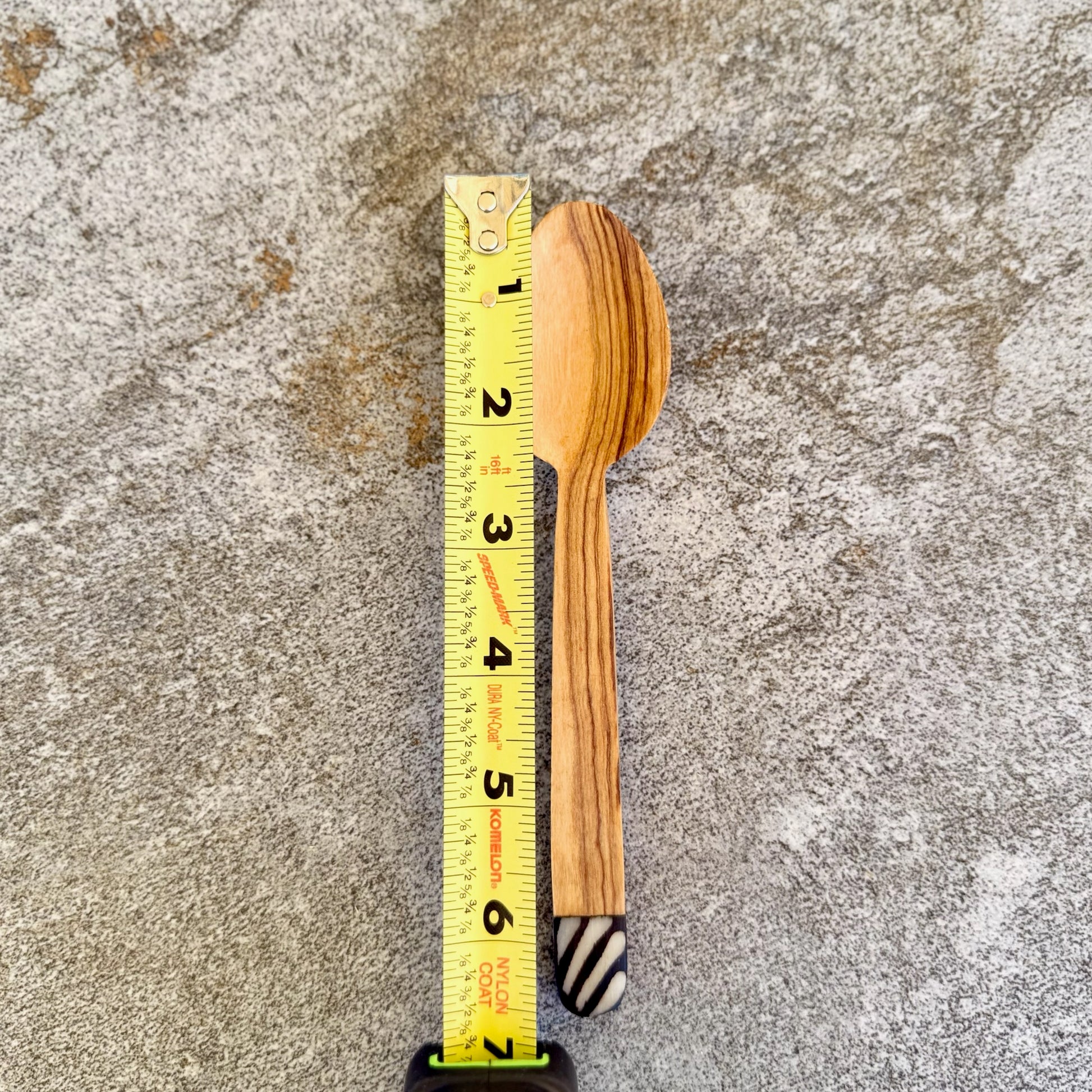 Hand-carved in Kenya from warm, richly grained rosewood, this 7-inch spoon features a distinctive bone-tipped inlay at the end of the handle — a subtle, elegant detail that sets it apart from our patterned bone-inlay pieces. Each artisan shapes and sands the spoon by hand, highlighting the natural beauty of the wood while adding a refined bone accent for a clean, modern finish.