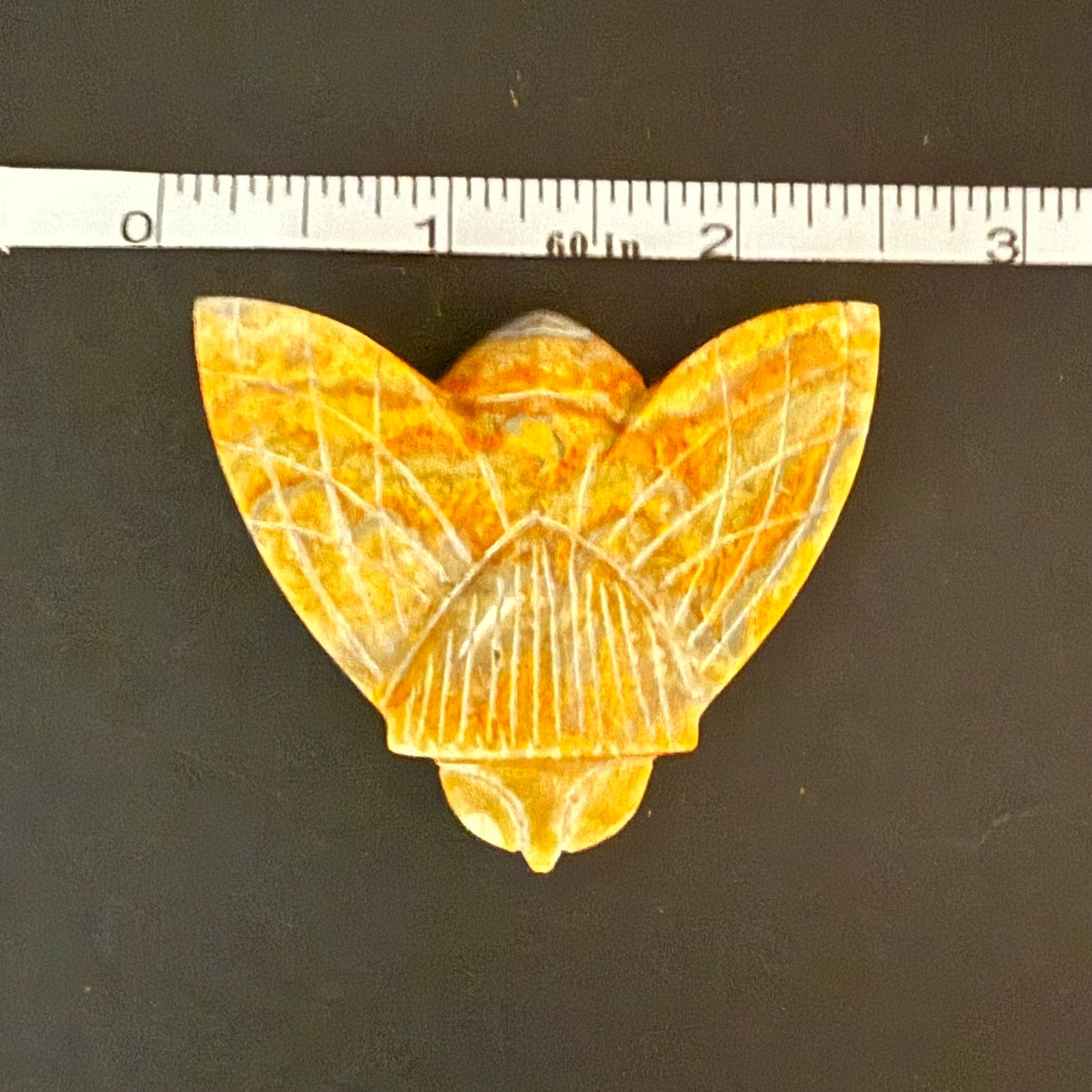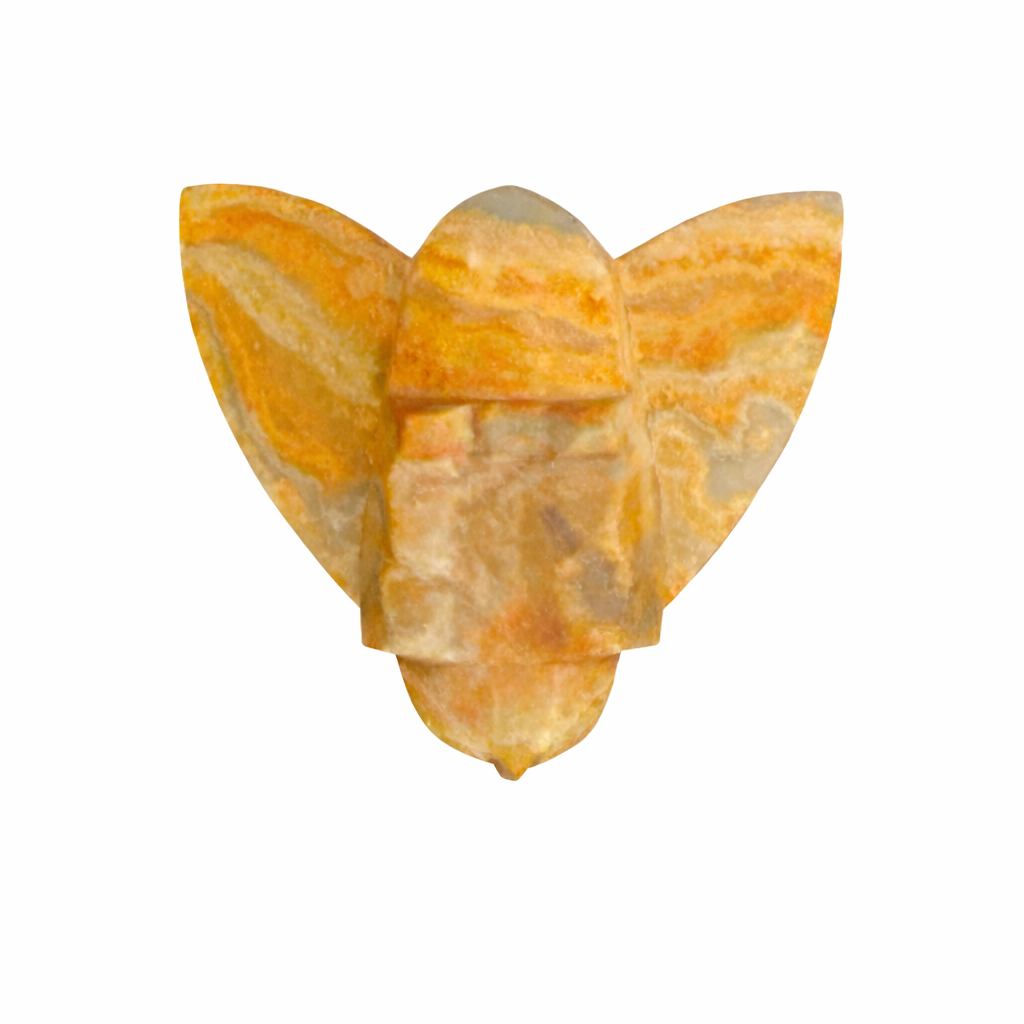This beautiful hand carved bee is made from vibrant Bumble Bee Agate, a striking stone known for its natural bands of golden yellow, fiery orange, and soft cream tones. The colors naturally resemble the markings of a bumblebee, making this stone especially fitting for this unique carving.